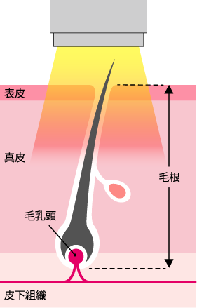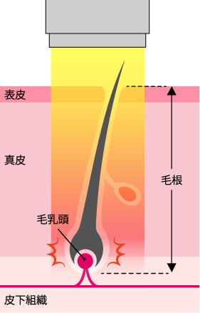 全てのレーザー治療機に共通する性質として大口径のものほどレーザー光の深達性を高め、深達度が高いほど脱毛効果は高くなります。